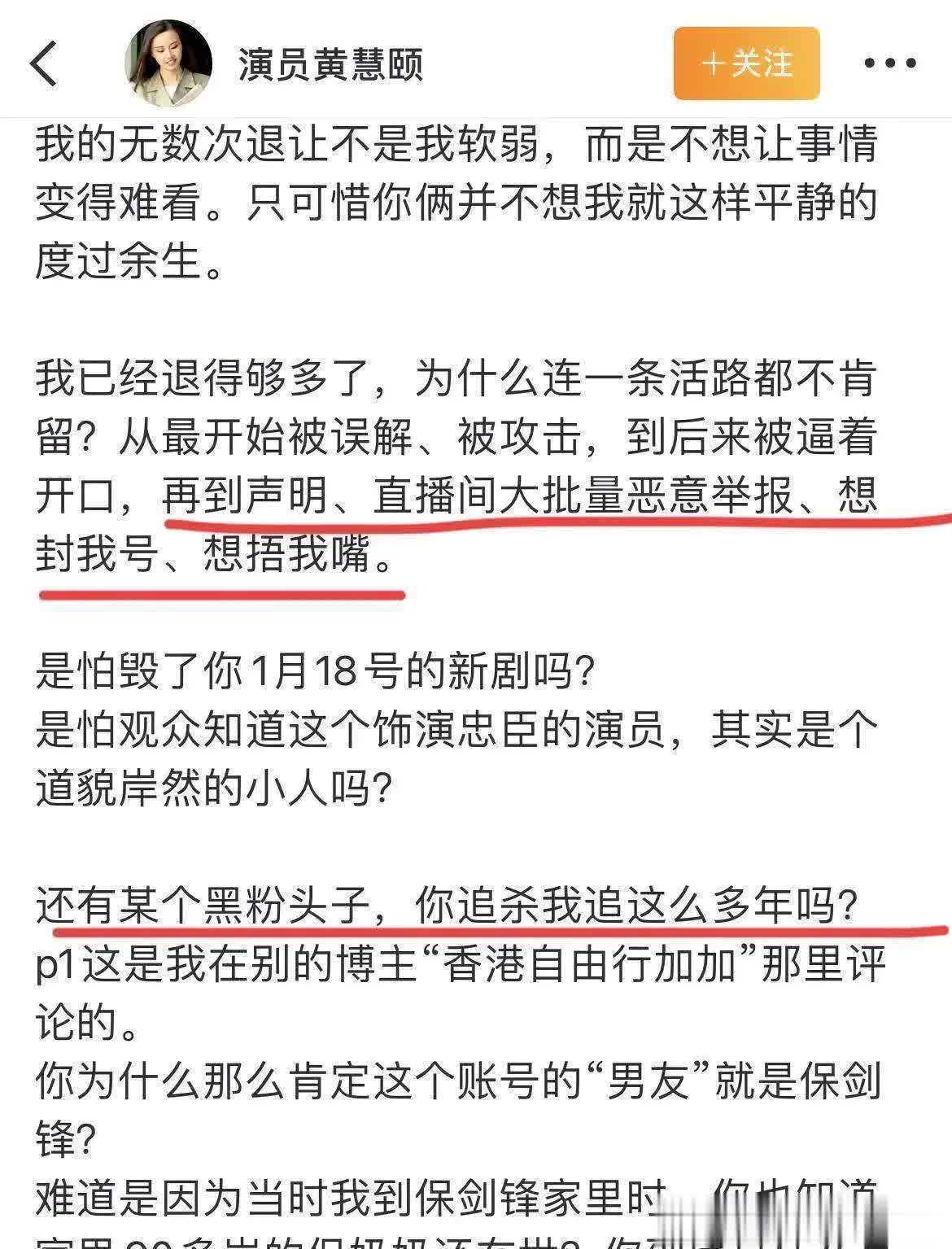 黄慧颐还在评论区回应网友,揭露她与保剑锋的隐婚事实,甚至激动控诉自己曾遭恶意举报、被黑粉追杀,言辞间满是委屈与愤怒。她的情感表达,让这段昔日恋情愈发复杂矛盾。